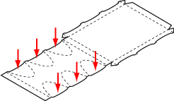 Next, cut and score the roof piece. For the scalloped roof, score the curved dotted lines, then push gently with your finger to indent each area of the roof. Use a rounded stick or the back of your fingernail to create the smooth indented rooftop. |
