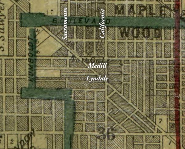 A careful look at a Chicago city map from the 1880s shows a curious detail which does not match the modern street grid: Sacramento Ave was not originally a through-street between Medill and Lyndale.